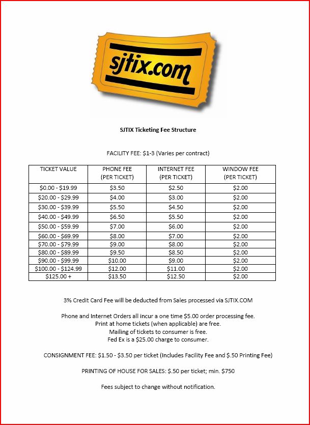 Purchase Directly from California Theater Box Office: Tickets are sold through www.sjtix.com and like all other ticket outlets they charge customers service fees in addition to the ticket prices based on the following chart:
